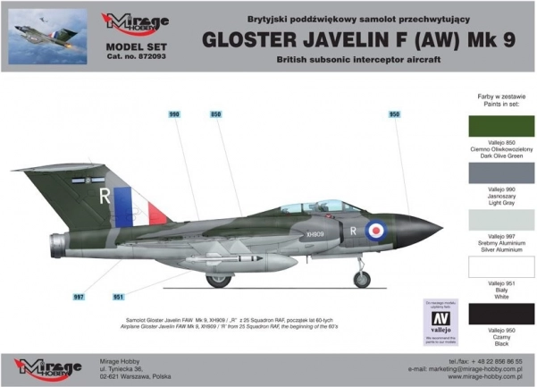 Verne spracovaná stavebnica legendárneho britského prepadového stíhača Gloster Javelin F(AW) Mk.9 v mierke 1:72. Ideálne pre nadšencov leteckej histórie aj modelárov od 14 rokov. V balení nájdete všetko potrebné na okamžitý začiatok: plastový model 1:72, 5 akrylových farieb, lepidlo a štetec.