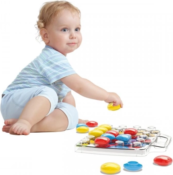 Set obsahuje praktický kufrík, ktorý možno rozložiť na základňu s doskou, do ktorej deti vkladajú kolíčky rôznych veľkostí. Pomocou týchto prvkov môžu deti vytvárať zábavné a pestrofarebné kompozície.
