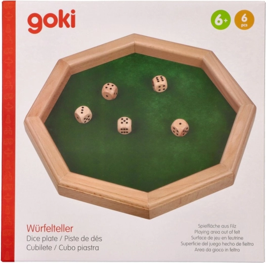 Štýlová dosková hra VRHCÁBY od GOKI pre zábavu s rodinou aj priateľmi. Hrá sa s 5 kockami, zapisujú sa kombinácie a cieľom je získať čo najviac bodov. Kvalitné drevené prevedenie a semišová hracia plocha zabezpečujú príjemne tiché hody. Kompaktný rozmer 25,7 × 25,7 cm, kocky 1,6 cm.