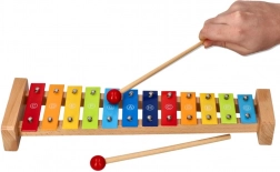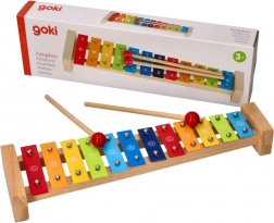 Farebný xylofón Goki so spevníkom Dúha je skvelou voľbou na prvé zoznámenie s hudbou. Robustná drevená konštrukcia v kombinácii s kovovými klávesmi zabezpečuje príjemný zvuk a dlhú životnosť. Vďaka názvom nôt na klávesoch a farebnému vedeniu v spevníku deti ľahko pochopia súvislosti medzi farbami, tónmi a jednoduchými melódiami.