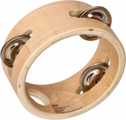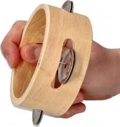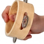 Tamburína je vyrobená z prírodného dreva, ktoré zaisťuje odolnosť a estetický vzhľad.