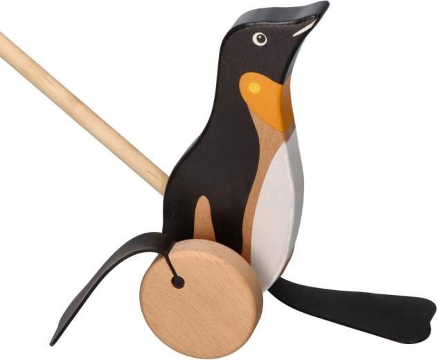 Drevená ťahacia hračka v tvare tučniaka prináša radosť a rozvíja deti hravou formou.