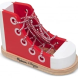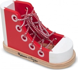Drevená šnurovacia topánka MELISSA & DOUG pomáha deťom od 3 rokov zvládnuť dôležitú zručnosť – samostatné zaväzovanie topánok. Vďaka stabilnej drevenej konštrukcii, viacerým očkám a textilnej šnúrke môžu deti trénovať rôzne typy prevlečení a uzlov, od jednoduchého prevlečenia až po mašličku.