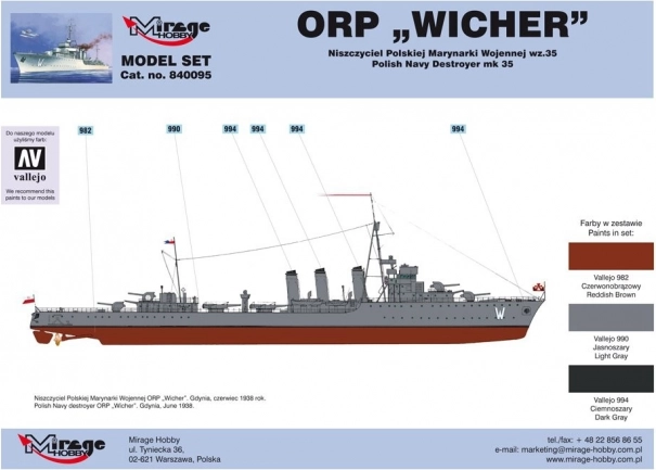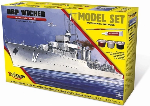 Detailná stavebnica legendárnej lode ORP WICHER vo verzii wz.35 vám umožní postaviť verne spracovaný poľský torpédoborec z 2. svetovej vojny. V balení nájdete všetko potrebné na štart: plastový model v mierke 1:400, tri akrylové farby, lepidlo a štetec – ideálna voľba pre nadšencov námornej histórie a modelárov od 14 rokov.