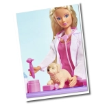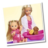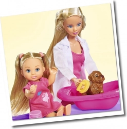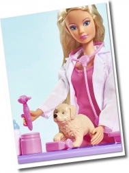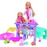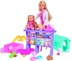 Veterinárka Steffi Steffi a Evi so 4 zvieratkami na ošetrenie.Súprava obsahuje stanicu, psí domček, klietku pre zvieratko, ihrisko a mnoho ďalších doplnkov. Celkom: 35 prvkov.Výška Steffi: 29 cmVýška Evi: 12 cm