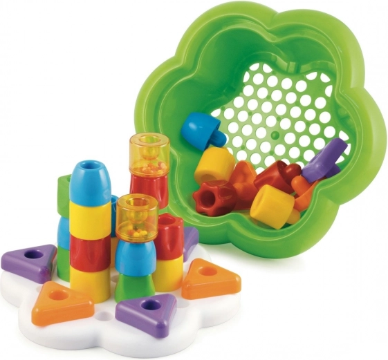 Stavebnica QUERCETTI Chunky Peggy je ideálna prvá mozaika pre deti od 12 mesiacov. Veľké, farebné dieliky sa príjemne držia, ľahko sa vkladajú do pružnej podložky a motivujú deti k objavovaniu farieb, tvarov aj prvých stavieb. Po skončení hry všetko jednoducho uložíte do elegantnej krabičky v tvare kvetu.