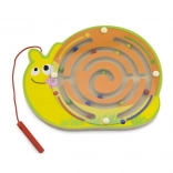 Drevený slimák s jasnými farbami a bezpečným magnetickým mechanizmom zaujme pozornosť každého dieťaťa.