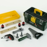 Zábavná sada pre malých kutilov: detský kufrík s náradím a realistickým aku skrutkovačom BOSCH. Ideálna pre deti od 3 rokov, rozvíja jemnú motoriku, kreativitu a predstavivosť. Prevádzka skrutkovača vyžaduje 2× AAA batérie (nie sú súčasťou balenia).