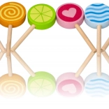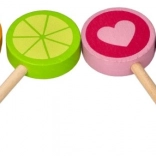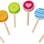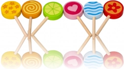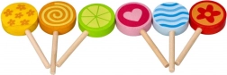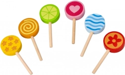 Každé zo šiestich drevených lízatiek má svoj vlastný unikátny dizajn, ktorý inšpiruje detskú predstavivosť a tvorivosť.