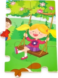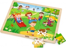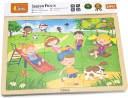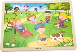 Drevené puzzle VIGA s motívom jarného parku prináša deťom zábavné učenie formou hry. Vďaka pevným dreveným dielikom sa ľahko uchopuje a skladá, pričom podporuje koordináciu oko–ruka a rozvoj priestorovej predstavivosti.