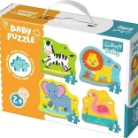 Objavte radosť z prvého skladania s detským puzzle setom TREFL Baby puzzle Zvieratá na safari 4v1. Každé z puzzle má odlišný počet dielikov (3, 4, 5 a 6), takže dieťa môže postupne zvyšovať náročnosť a budovať si sebavedomie. Silné, odolné a bezpečné dieliky sú prispôsobené pre malé detské ruky.