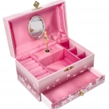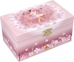 Dizajn v jemných ružových tónoch s baletkami a kvetmi pôsobí romanticky a nadčasovo. Šperkovnica je dekoratívny predmet, nie hračka, a skvele sa hodí ako originálny darček pre malé dámy aj milovníkov baletu.