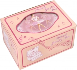 Táto pôvabná šperkovnica v štýle hracej skrinky je ideálna na bezpečné uloženie detských pokladov – prstienkov, náušníc aj drobných suvenírov. Po otvorení veka sa roztočí baletka pred zrkadielkom a rozoznie sa ikonická melódia z Labutieho jazera. Vnútro je vypolstrované a premyslene členené pre prehľadné ukladanie.