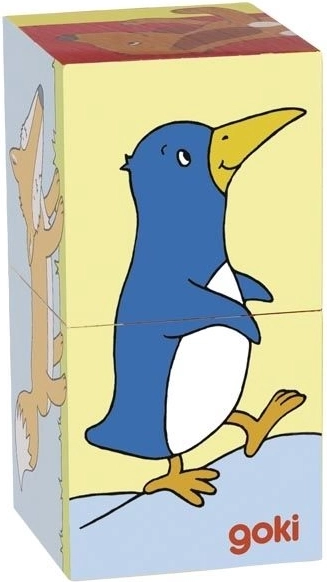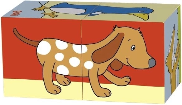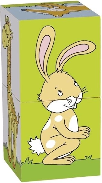 Doprajte svojim najmenším radosť zo skladania drevených kociek s rozkošnými motívmi zvieratiek. Tieto kocky umožňujú vytvoriť šesť rôznych obrázkov: líška, slon, tučniak, pes, žirafa a zajac. Každé zloženie je výzvou pre detskú fantáziu a schopnosti.