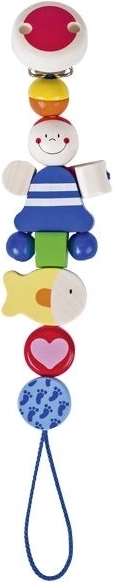 Veselé motívy piráti a ryby priťahujú detskú pozornosť a podnecujú zmyslový vývoj. Praktický klip umožňuje ľahké pripevnenie k oblečeniu, čím sa minimalizuje strata alebo pád, a mechanizmus nastavovania dĺžky zvyšuje pohodlie.