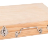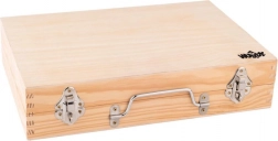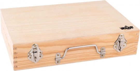 Robustný drevený kufrík s kovovým zatváraním a držadlom chráni nástroje a umožní ľahké prenášanie kamkoľvek – do izby, na chalupu aj k starým rodičom.