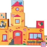 Tieto drevené kelímky v tvare domčeka podporujú učenie formou hry. Deti môžu kelímky skladať, vkladať a triediť, čím zlepšujú koordináciu oko–ruka, priestorovú predstavivosť a trpezlivosť. Lakovaný povrch je hladký a príjemný na dotyk.