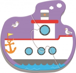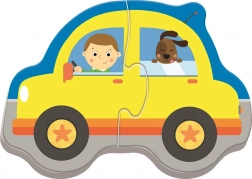 Každé z puzzle predstavuje iný dopravný prostriedok – auto, vlak, lietadlo a loď – a podporuje kreatívnu hru.