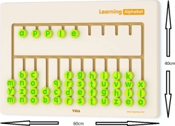 Vďaka pevnému drevenému rámu a hladkým komponentom je tabuľka bezpečná a odolná. Použité farby sú netoxické a vhodné pre deti. Vizuálne prehľadné rozloženie písmen aj jasné kontrasty uľahčujú orientáciu a učenie abecedy.