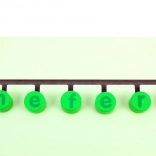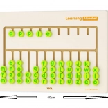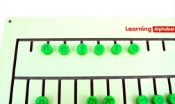 Zelené písmenkové žetóny sa vkladajú a posúvajú v drážkach, takže si deti hravo precvičujú rozpoznávanie písmen a skladanie jednoduchých slov, ako je „apple“.