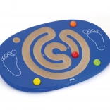 Dieťa stojí na doske a prenášaním váhy vedie guličky po dráhe. Zábavná motivácia k pohybu podporuje stabilitu a koncentráciu.