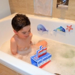 Súčasťou balenia je praktická sieťka s horným uškom a dvoma prísavkami – po kúpaní stačí všetky dieliky uložiť, prichytiť sieťku na obklady a nechať hračky rýchlo vyschnúť a zostať na svojom mieste.