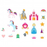 Veselé kúpace samolepky z ľahkej peny premenia každý kúpeľ na zábavnú hru. Deti môžu tvoriť vlastné rozprávkové príbehy s jednorožcami, princeznami a kúzelnými zámkami. Materiál je bezpečný do vody a po navlhčení dobre drží na hladkých povrchoch.