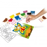 Umelecká hra s maľovaním pieskom spočíva v postupnom odkrývaní jednotlivých narezaných častí obrázka, aby sa odkryl lepkavý povrch vybraného fragmentu. Každý odkrytý fragment sa posype pieskom v farbe podľa obrázkového vzoru uvedeného v návode a na krabici.