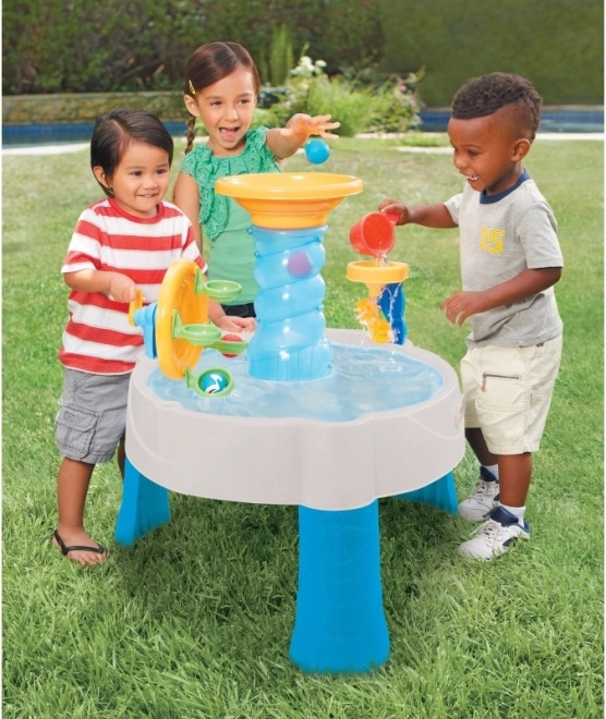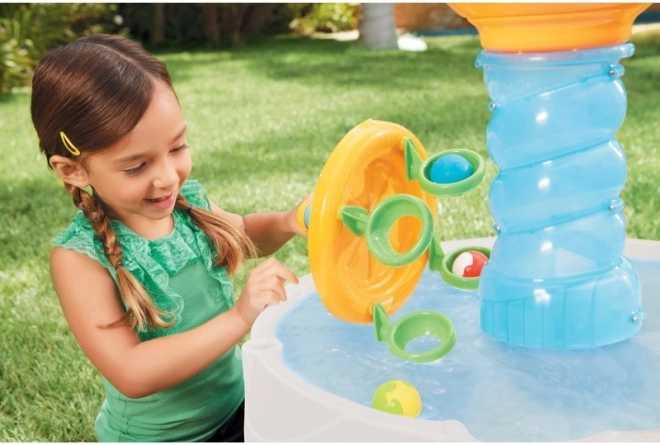 Fontána špirála je fantastická hračka na vodu aj loptičky. Vložte loptičky do veľkej špirály a pozorujte, ako sa kotúľajú do vody. Hrajte sa s nimi pri rôznych aktivitách, užite si to obrovské koleso, ktoré Vám pomôže vybrať loptičky z vody. Je to úžasná zábava pre deti.
