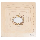 Toto šikovné vrstvené puzzle predstavuje deťom jednoduchou formou cyklus života sliepočky. Jednotlivé vrstvy a dieliky na drevenej doske navádzajú k prirodzenému objavovaniu, triedeniu a skladaniu. Vďaka robustnému drevu a príjemným farbám je hračka odolná, bezpečná a láka k opakovanému používaniu.