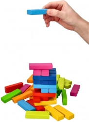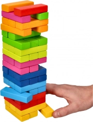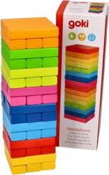 Balančná veža od značky GOKI prináša klasickú hru plnú napätia v modernom dúhovom prevedení. Každé poschodie tvoria tri farebné drevené doštičky, ktoré skladáte do stabilnej veže a následne opatrne presúvate jeden dielik po druhom na jej vrchol. Cieľom je udržať rovnováhu čo najdlhšie.