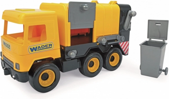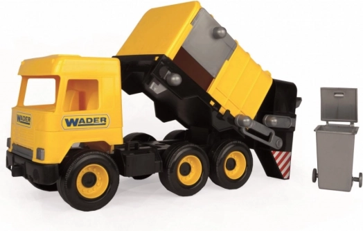 Auto má funkčný zadný nakladač, ktorý uľahčuje nakladanie a vysýpanie „odpadu“ z priloženej popolnice. Svieže žlté prevedenie s čiernymi detailmi a šesť kolies zabezpečujú stabilitu a hladký pohyb po rôznych povrchoch.