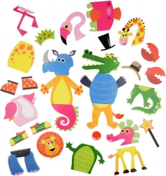 Vytvárajte krokodíla, žirafu, plameniaka a ďalšie. Miešajte časti tiel a doplnky a vymýšľajte stále nové postavičky.