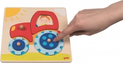 Drevené vkladacie puzzle s obrázkom traktora je ideálna prvá skladačka pre najmenších. Vďaka presne vyfrézovaným obrysom na podložke deti ľahko nájdu správne miesto pre každý dielik a s radosťou dokončia obrázok. Kvalitné spracovanie od značky GOKI zaručuje odolnosť a bezpečné hranie.