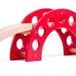 Zostavte si svoj vlastný svet plný vláčikov s týmto dreveným mostom s červeným oblúkom. Jeho robustná konštrukcia z prírodného dreva a plastu zaisťuje bezpečnú a zábavnú hru pre najmenších. Most má dĺžku 62 cm a je súčasťou komplexnej sady železničných dielov.