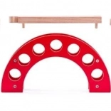 Červený oblúk a prírodné drevo vytvárajú krásny estetický kontrast a podporujú kreatívnu hru.