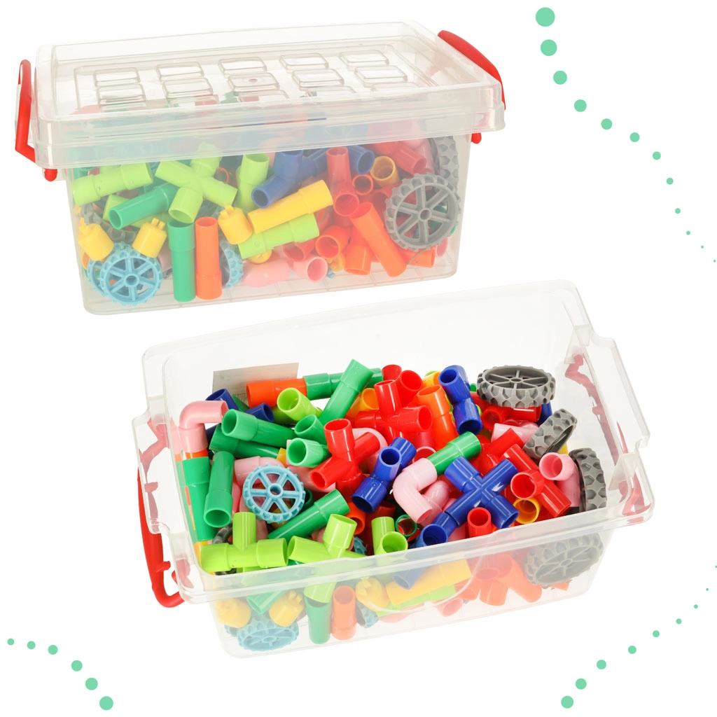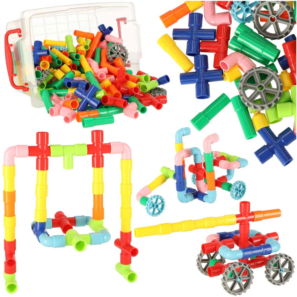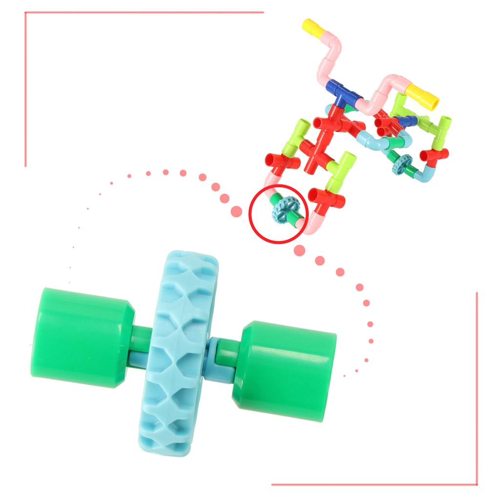 Objavte farebné stavebné kocky pripomínajúce vodné rúrky s 84 kusmi, vrátane kolies. Podporte rozvoj kreativity a motorických zručností vášho dieťaťa s touto ideálnou hračkou pre hru doma aj vonku.