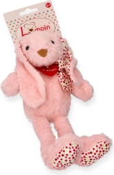 Roztomilý plyšový zajačik Stella je ideálny spoločník pre deti od narodenia. Má jemnučký ružový kožúšok, dlhé ušká a labky s kvetinovým vzorom. Na krku nosí plstené srdiečko a ladiacu mašličku, ktoré dodávajú hračke čarovný vzhľad. Možno ho prať ručne na 30 °C pre jednoduchú údržbu.