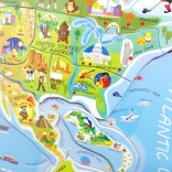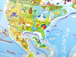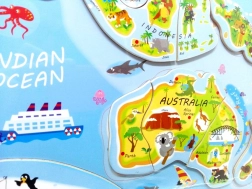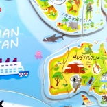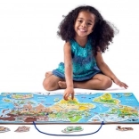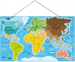 Táto magnetická mapa sveta je skvelým nástrojom pre deti, ako hravou formou spoznávať krajiny a kontinenty. Spodnú vrstvu tvorí zjednodušená politická mapa, kde deti pripevňujú puzzle dieliky. Učia sa geografickú polohu a charakteristiky jednotlivých krajín, vrátane fauny v týchto oblastiach.