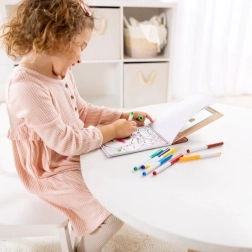 Kompaktná maľovanka s integrovanými držiakmi na viacfarebné fixky je ideálne riešenie na zábavu na cestách aj doma.