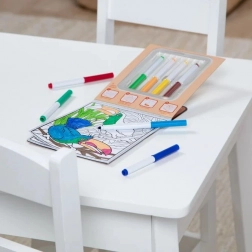 Vďaka viacfarebným fixkám v balení je tvorenie rýchle, čisté a bez zbytočného neporiadku. Kresby s motívmi divokých zvierat (napr. zebra, plameniak či koala) deti inšpirujú k objavovaniu prírody a k rozprávaniu vlastných príbehov.