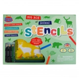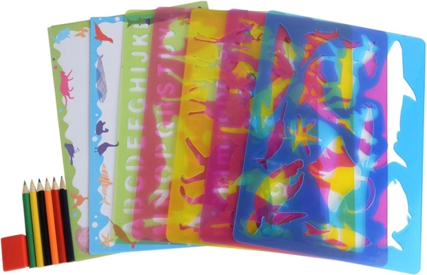 Veľká sada šablón s motívmi zvierat od Buddy & Barney je perfektný kreatívny nástroj pre deti. Obsahuje všetko potrebné pre kreslenie a je dokonale prenosné vďaka praktickému baleniu vo forme zásuvky.
