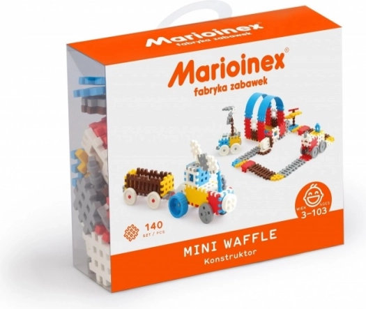 Mini Waffle Stavebnica ponúka 140 dielikov inovatívneho mäkkého materiálu, ktorý pripomína gumu. Vďaka menšiemu rozmeru sú stavebnice viac mobilné a otvárajú nové možnosti.