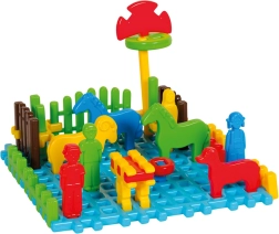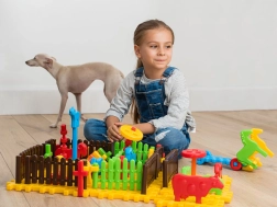 Stavebnica Marioinex Mini Farma prináša deťom zábavu aj rozvoj zručností v jednom. Diely z pružného, mäkkého plastu sa ľahko spájajú a držia, takže aj menšie deti zvládnu stavať ohrady, dvor alebo celé hospodárstvo. Jemné, atraktívne farby a príjemný povrch lákajú k hre znova a znova.