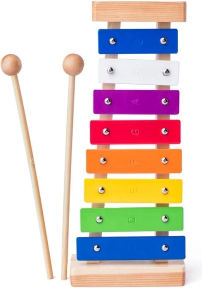 Nástroj obsahuje osem kovových klávesov v rôznych farbách umiestnených na drevenej základni. Doplnené o dve drevené paličky, tento produkt je prispôsobený pre deti vo veku od troch rokov, ktoré sa s jeho pomocou môžu vzájomne baviť a učiť nové zručnosti.