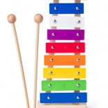 Cimbalíky majú sedem rôznofarebných kovových klávesov a drevenú základňu, čo upúta pozornosť dieťaťa.