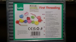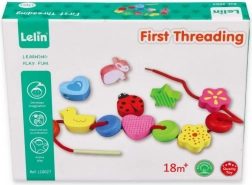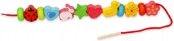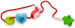 Textilná šnúrka s drevenými koncovkami pre jednoduché navliekanie, pomáha rozvíjať jemnú motoriku.
