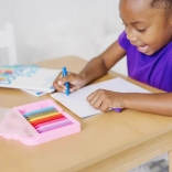 Ružové puzdro s motívom korunky udržiava voskovky prehľadne uložené a ľahko prenosné – ideálne do škôlky, školy aj na cesty.