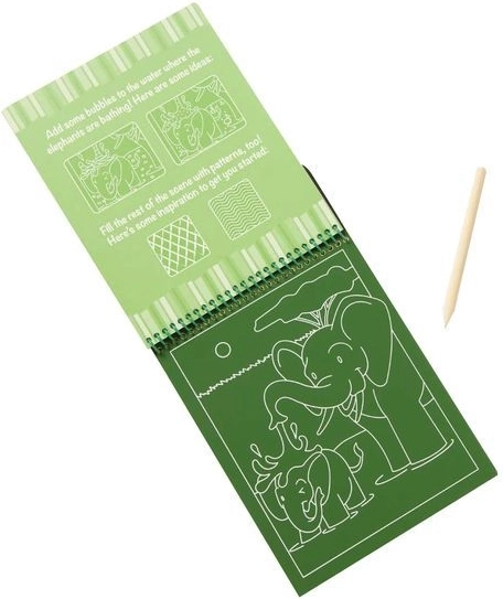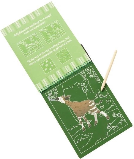 Stierací blok Safari je ideálna aktivita pre deti, ktoré milujú tvorenie. Každá stránka skrýva farebnú scénu, ktorú dieťa odhalí jemným zoškrabovaním hornej vrstvy dreveným stylusom. Vďaka kompaktným rozmerom je perfektný do auta, na dovolenku aj do čakárne.