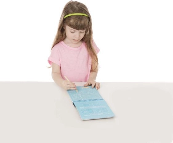 Špeciálna vrstva skrýva pestré farby, ktoré deti odhaľujú dreveným stylusom. Čistá tvorba bez farieb a štetcov.